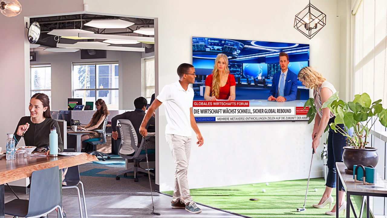 Erwecken Sie Eindruck mit unseren Großmonitoren als Foyerlösung. Klare Bilder und hochauflösende Displays ziehen die Aufmerksamkeit Ihrer Besucher an. Nutzen Sie unsere Großmonitore für Informationen, Veranstaltungshinweise oder visuelle Präsentationen.